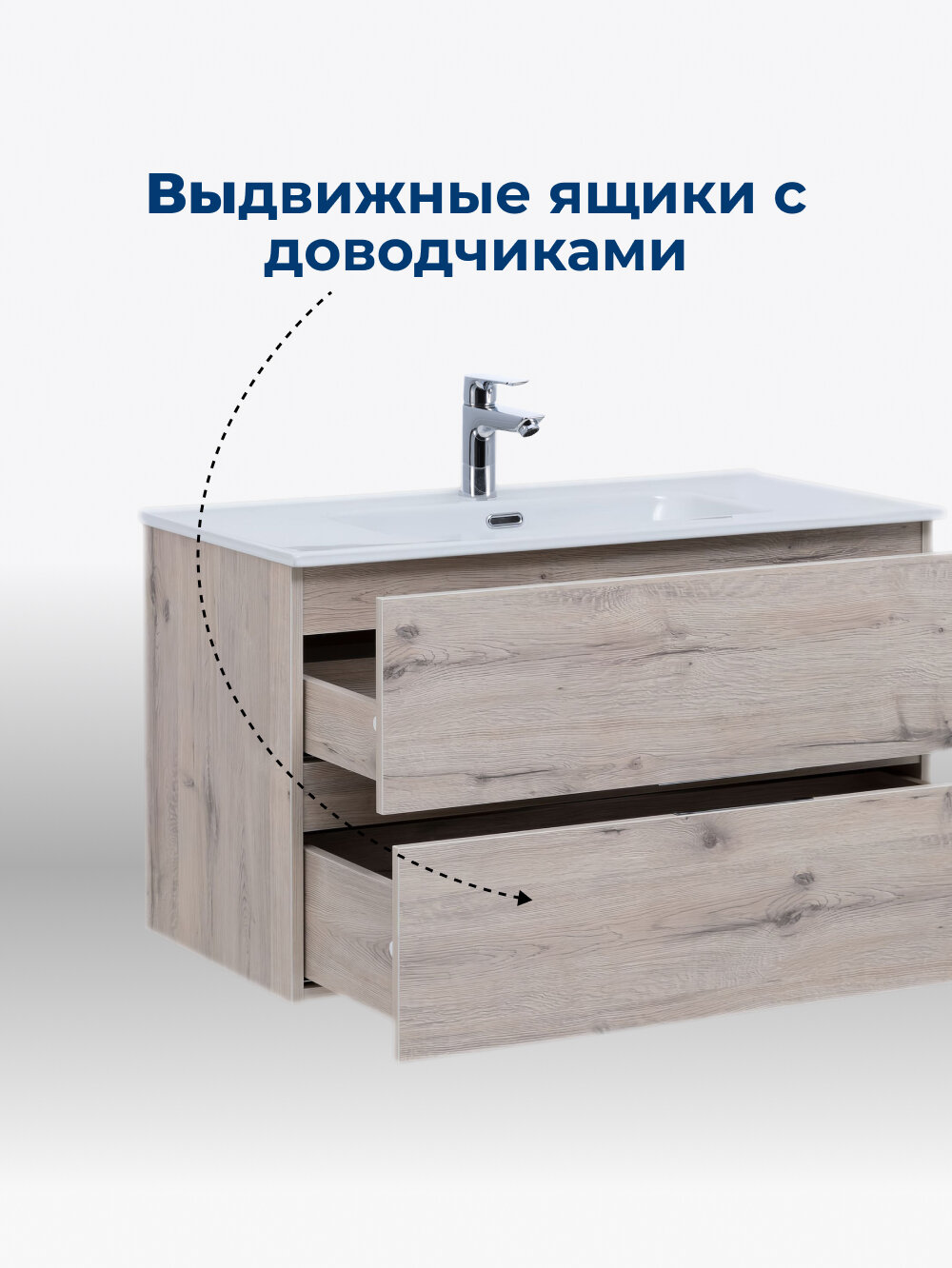 Тумба с раковиной Aquanet Алвита New 100 2 ящика, дуб веллингтон белый 00277521
