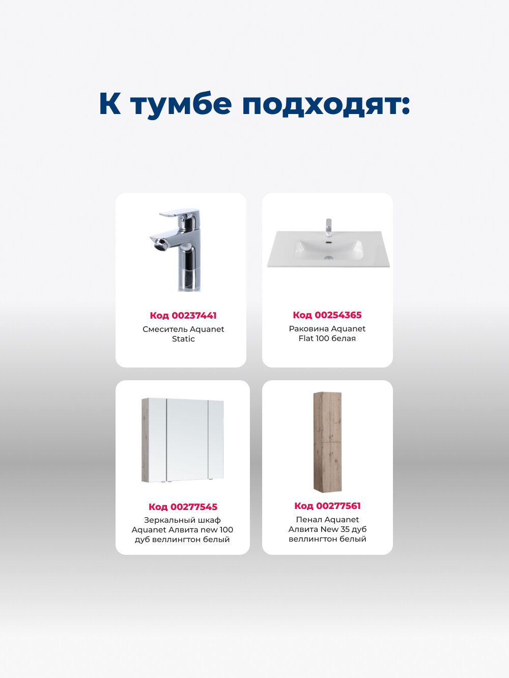 | Комплектация | Тумба Алвита new 100 цв.дуб веллингтон белый (277521), раковина в комплект не входит |