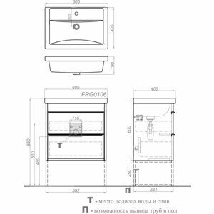 Aqwella Подвесная тумба 60 Fargo дуб балтийский FRG0106DB + умывальник Фостер 600 4640021060773 Aqwella