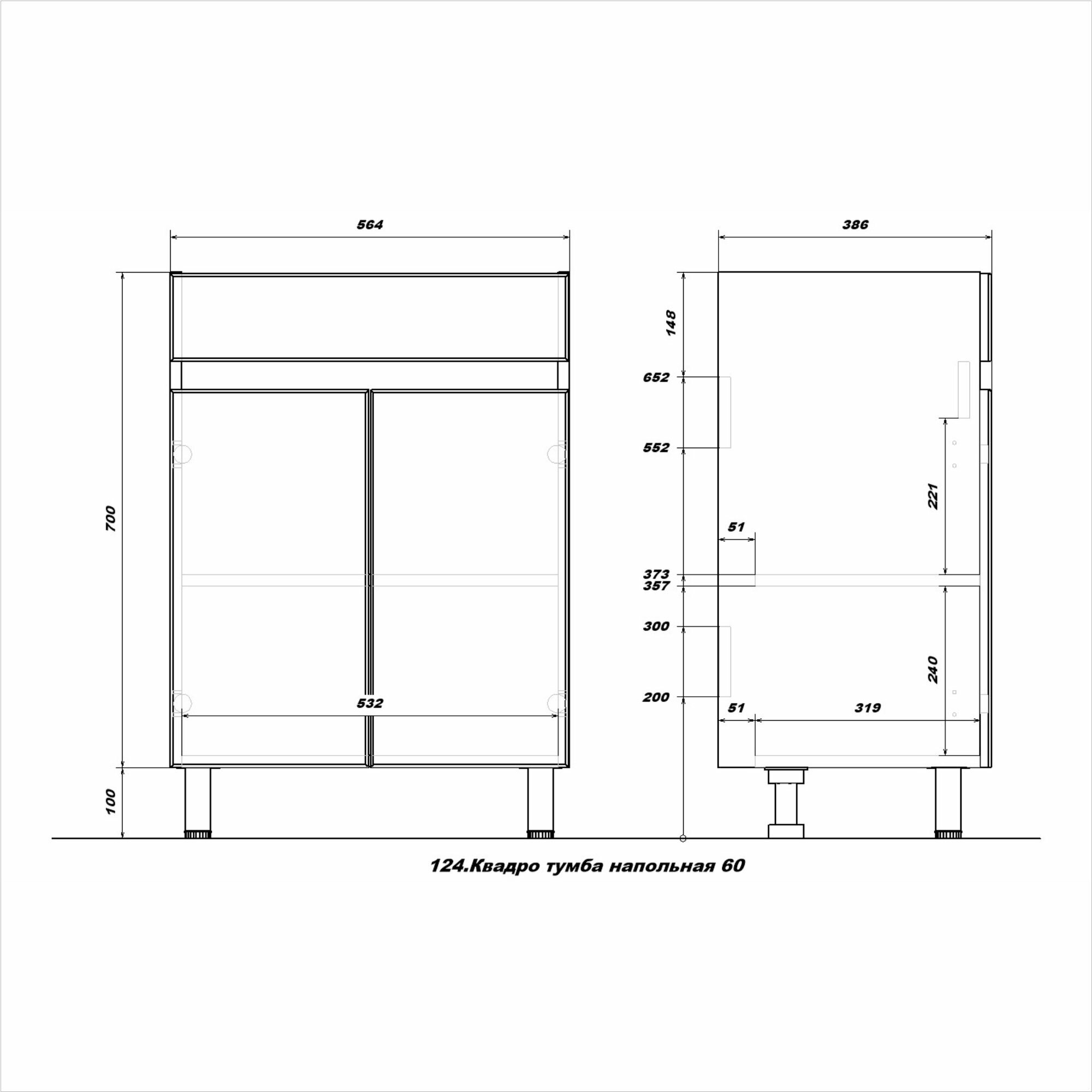 Тумба под раковину Sanstar Квадро 60 124.1-1.4.1. Белая
