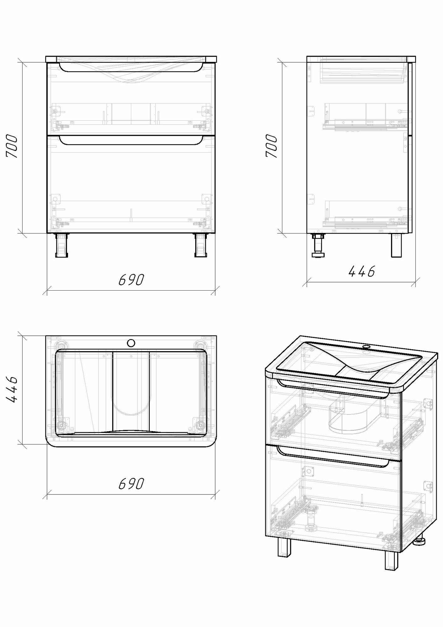 Тумба напольная с 2 ящиками Grossman Адель-70 см под раковину Адель-70
