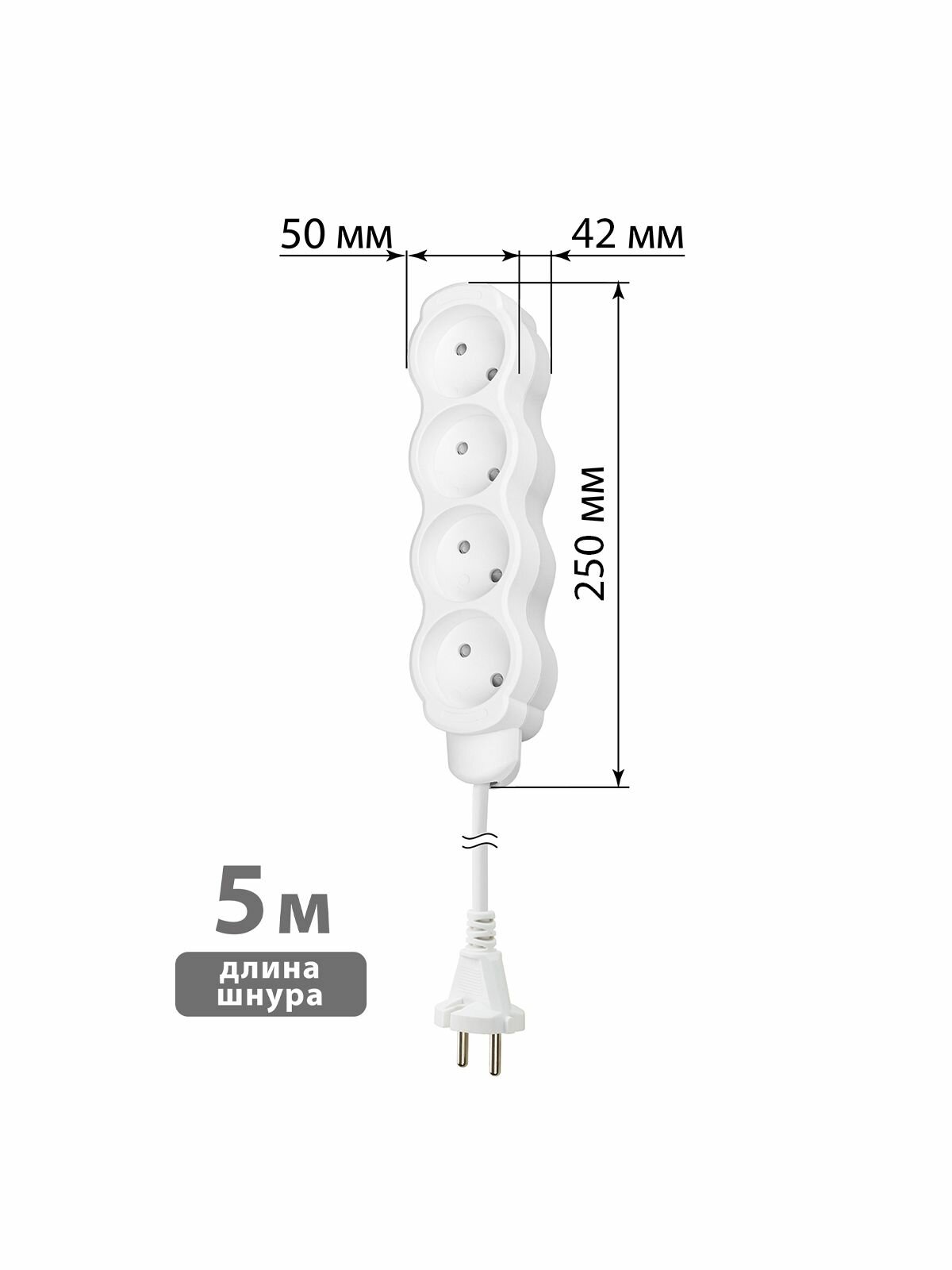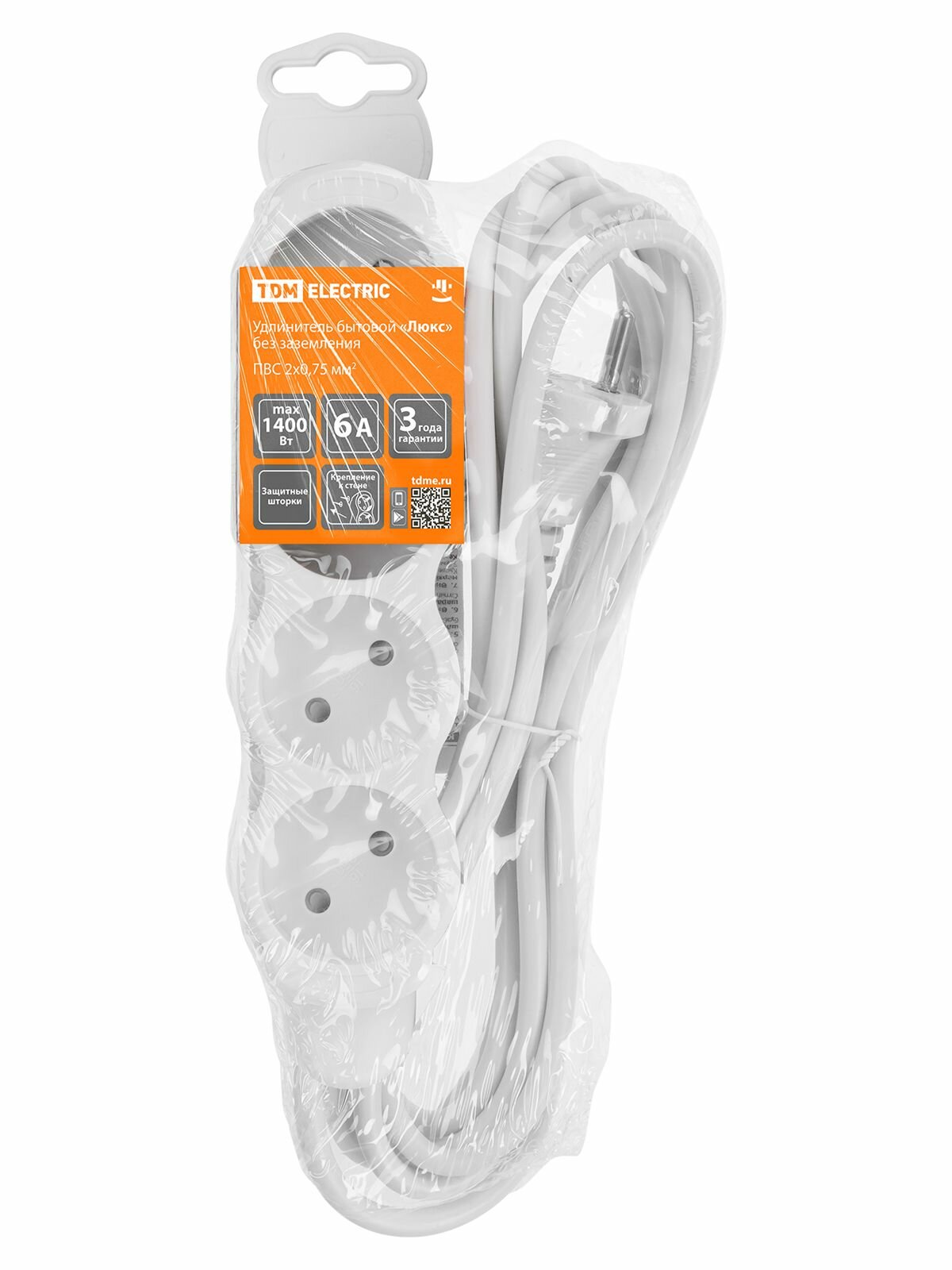 Удлинитель бытовой "Люкс" УЛ4 4 гнезда, 5м, без заземления, с защитными шторками, ПВС 2х0,75 мм2 10А/250В бело-серый, TDM SQ1303-0228 (1 шт.)