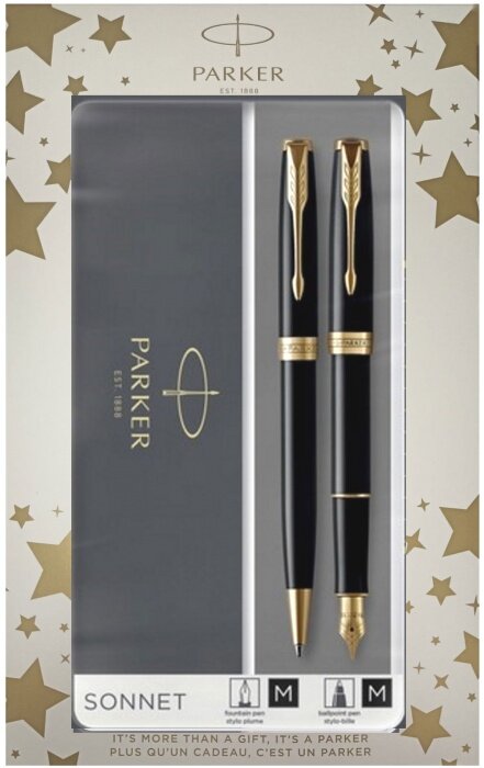 Набор Parker 2022: шариковая + перьевая ручки Parker Sonnet Core FK530, Lacquer Deep Black GT 2093371-STAR интересное: