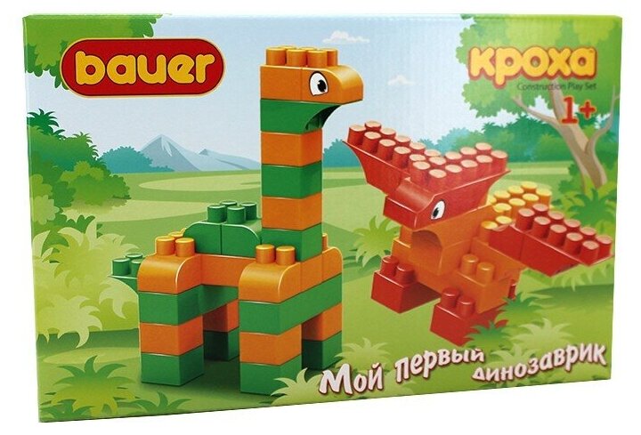 Конструктор Bauer Кроха Мой первый динозаврик. Набор из 2-х динозавров (Брахиозавр, Птеродактиль) 42 детали