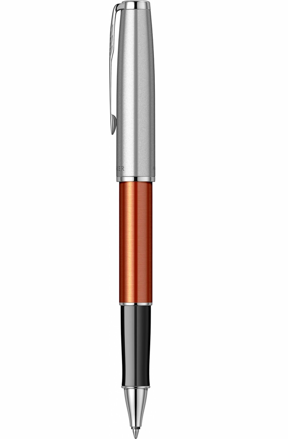Ручка-роллер Parker Sonnet Essentials Orange SB Steel CT, цвет чернил black,перо: F, в подарочной упаковке. интересное: