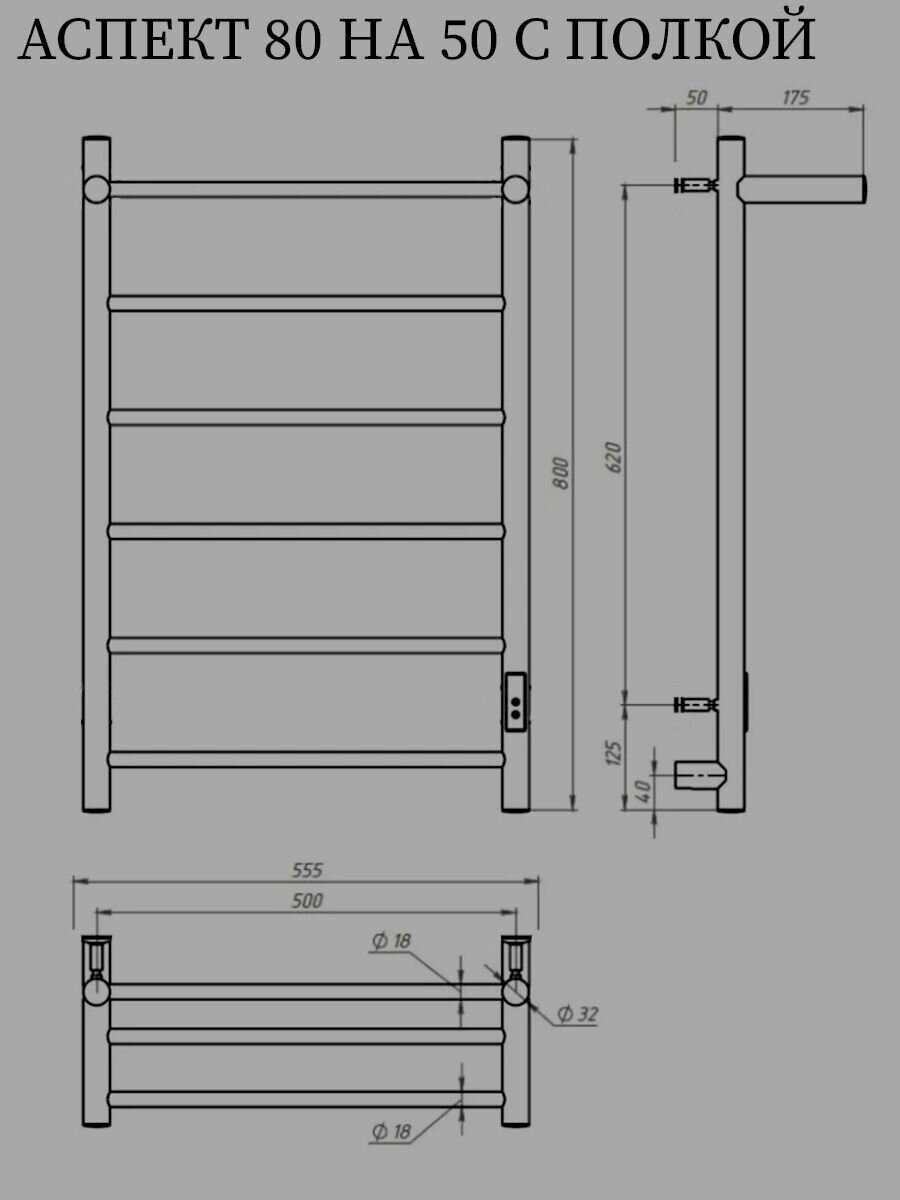 Полотенцесушитель электрический Status Аспект сп 1 80 на 50 с полкой, черный, таймер, скрытое универсальное подключение