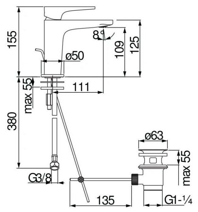 Nobili YO126118/1CR Yoyo Смеситель для раковины, chrome