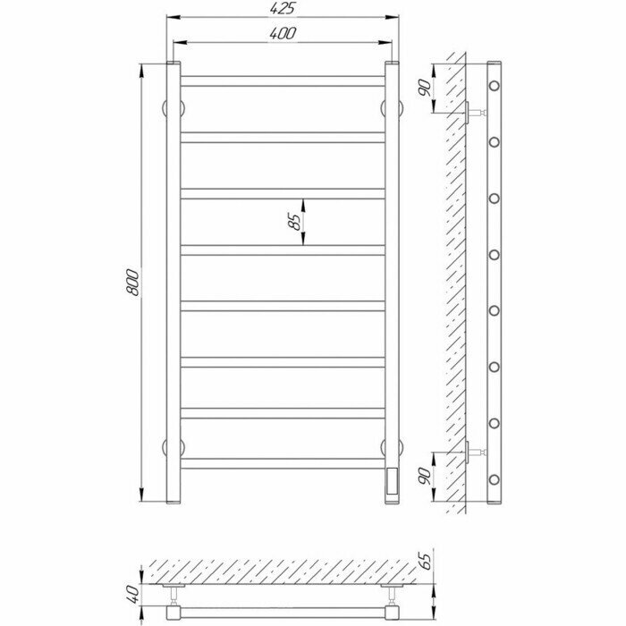 Полотенцесушитель электрический Laris Феличия ЧКЧ8 400х800 Черный Муар Правое подключение 73207613