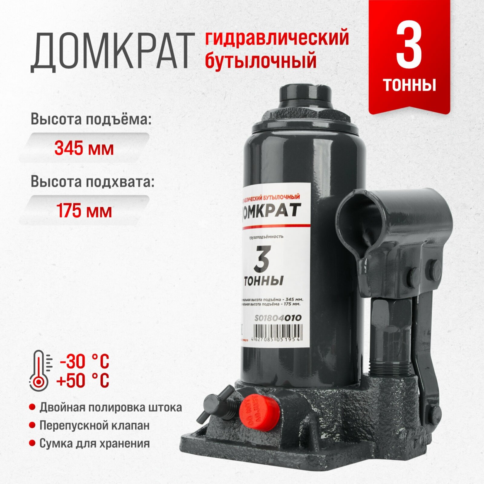 SKYWAY S01804010 Домкрат гидравлический "" бутылочный 3т h 175-345мм с клапаном в коробке+сумка; SKYWAY