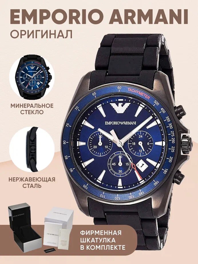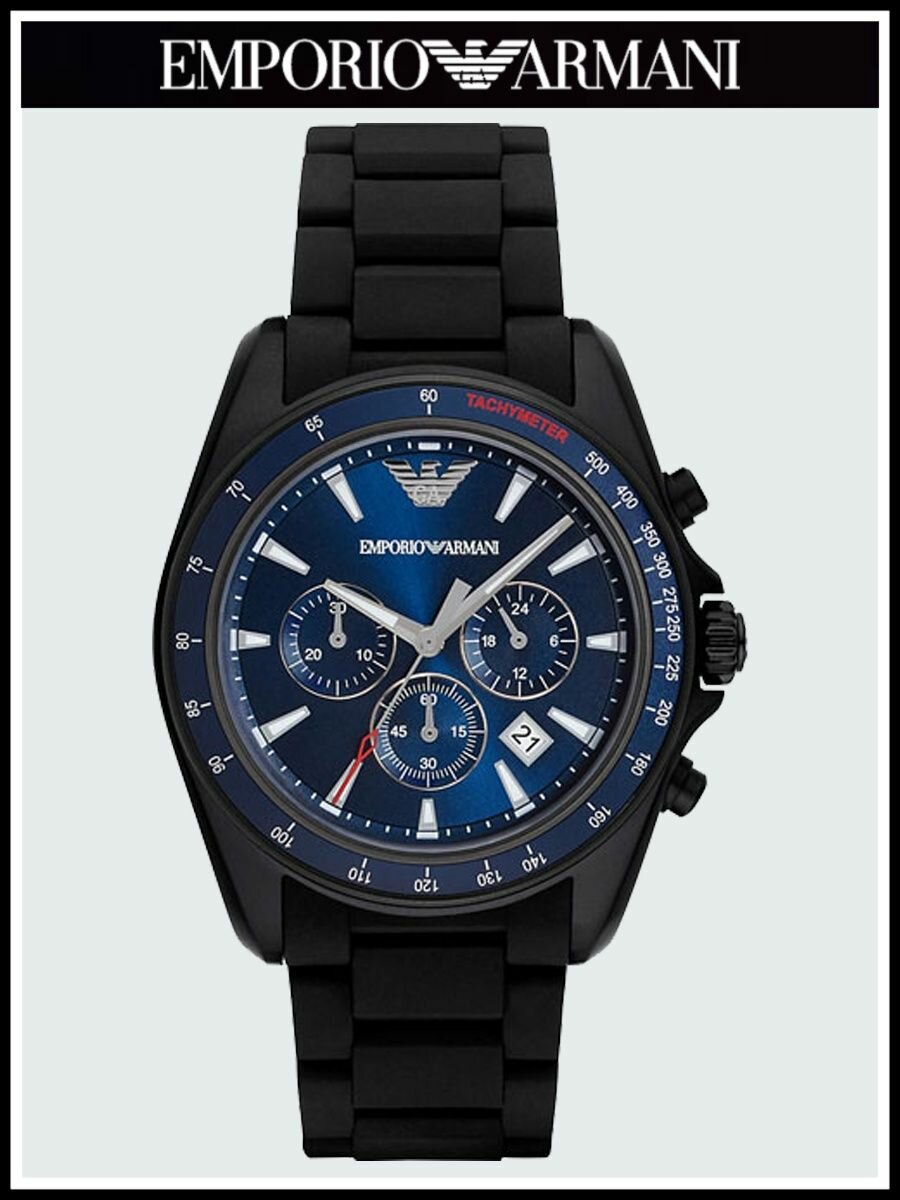 Наручные часы EMPORIO ARMANI AR6121 кварцевые, хронограф, тахиметр, секундомер, водонепроницаемые, подсветка стрелок