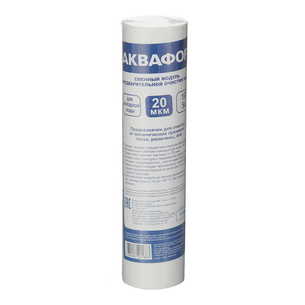 Купить Картридж фильтра Аквафор ЭФГ 63/250 для холодной воды предфильтр полипропиленовый 20 мкм 10SL