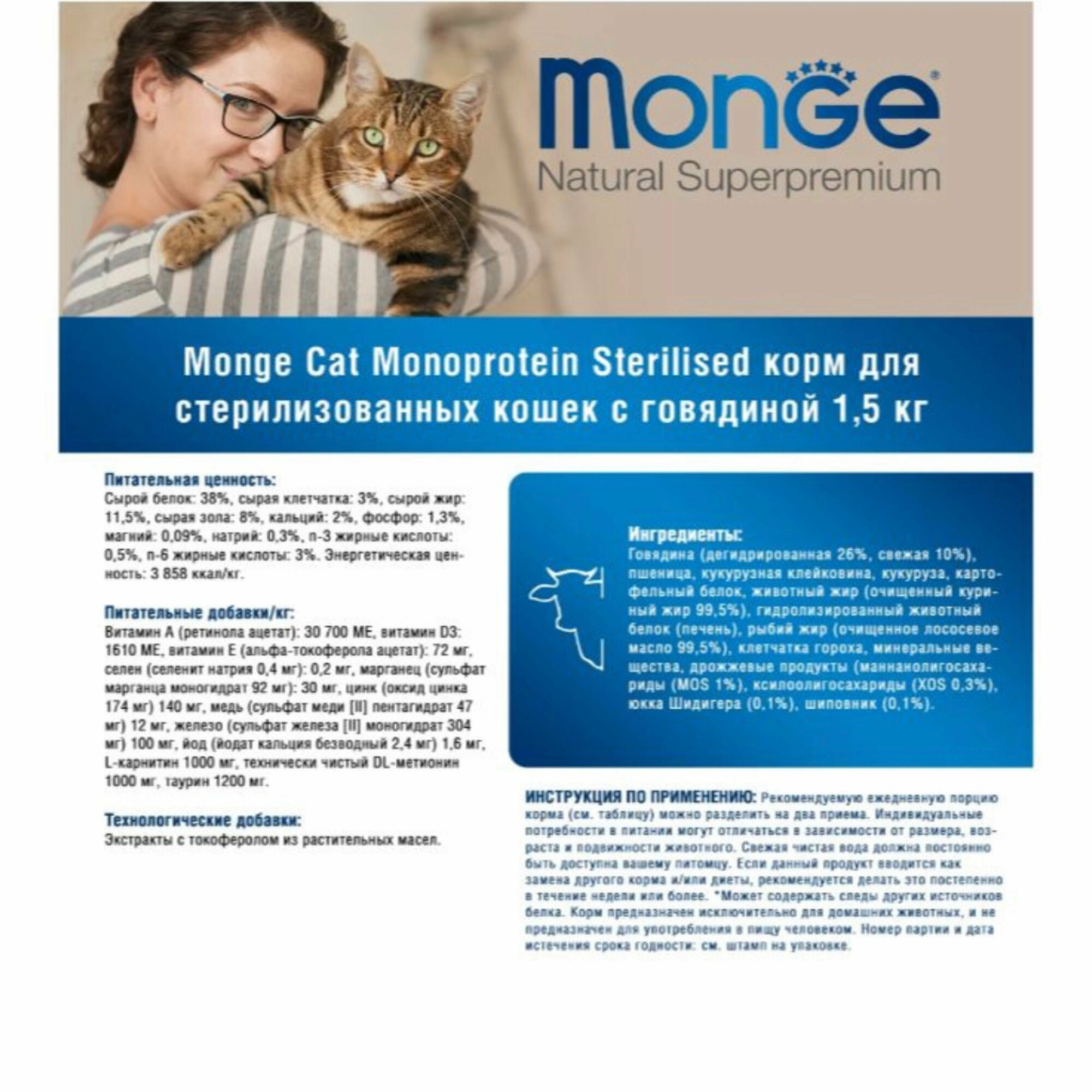 Купить Сухой корм для стерилизованных кошек Monge Monoprotein, с говядиной 1.5 кг