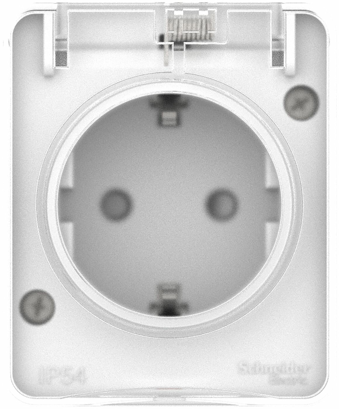 Розетка IP54 со шторками с крышкой Schenider AtlasDesign Profi54 (белый)