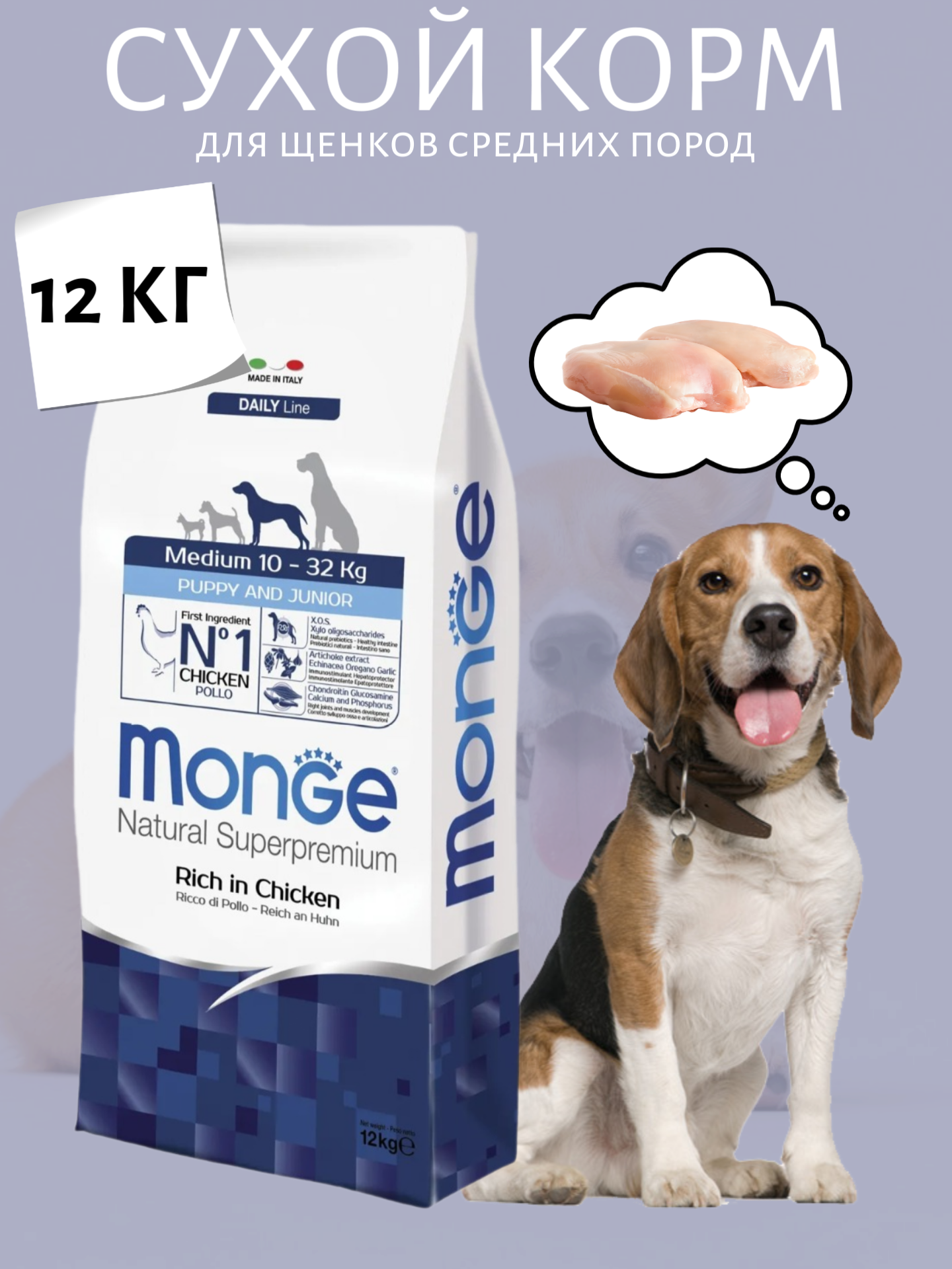 Сухой корм для щенков Monge Daily Line Medium Puppy, курица 12 кг (для средних и крупных пород)