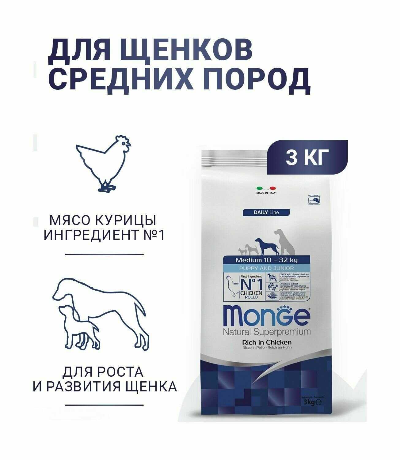 Сухой корм для щенков Monge Daily Line, курица 3 кг (для средних пород)