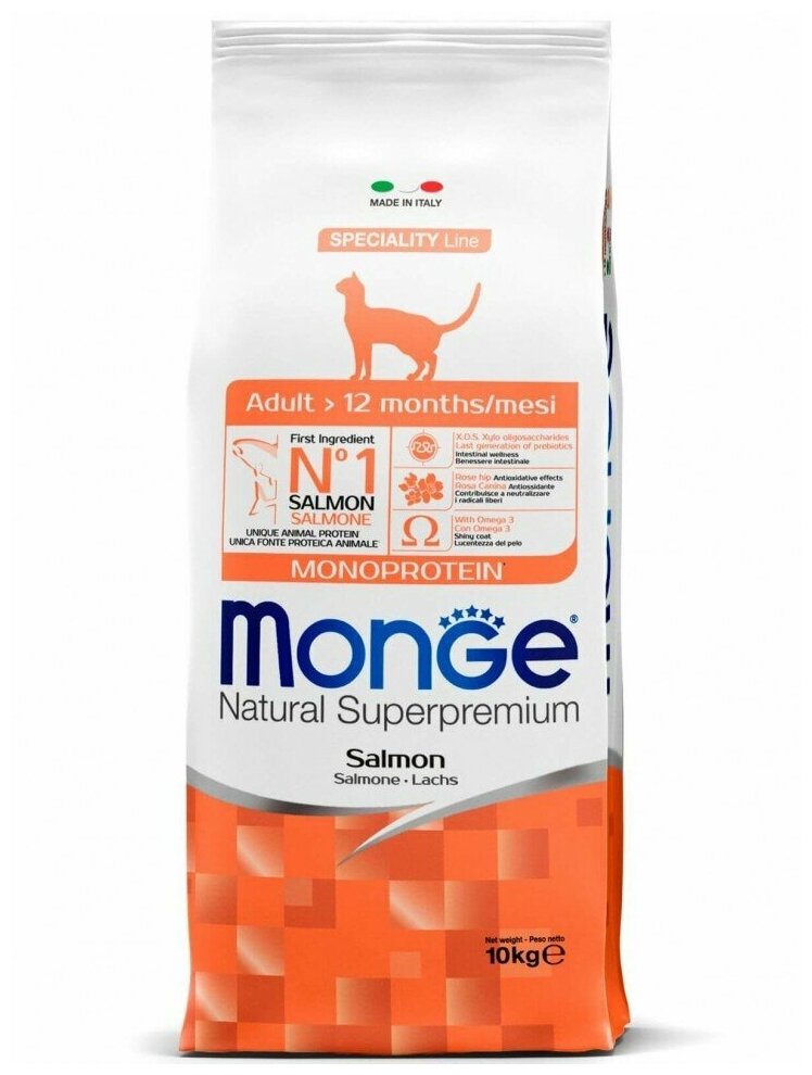 Корм Monge Cat Speciality Line Monoprotein для взрослых кошек с лососем 10 кг интересное: