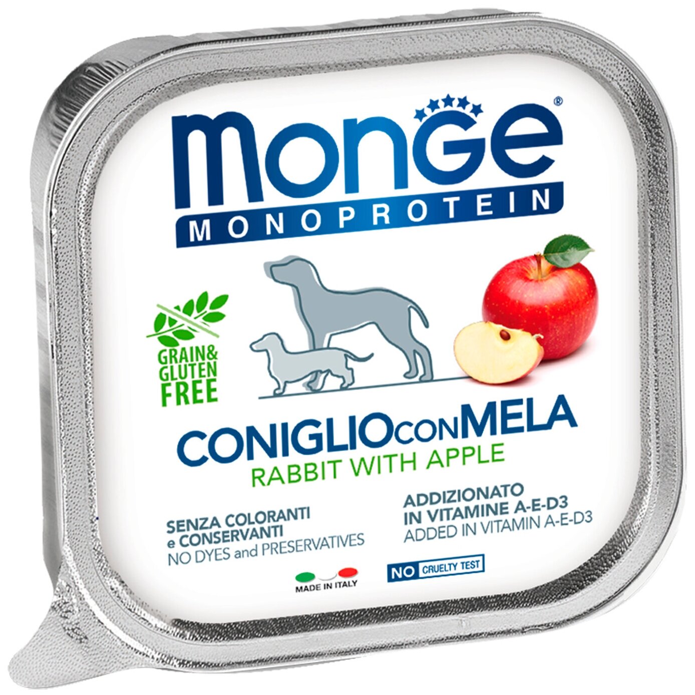 Купить Влажный корм Monge Dog Natural Monoprotein Fruits для собак, паштет из кролика с яблоком, консервы 150 г