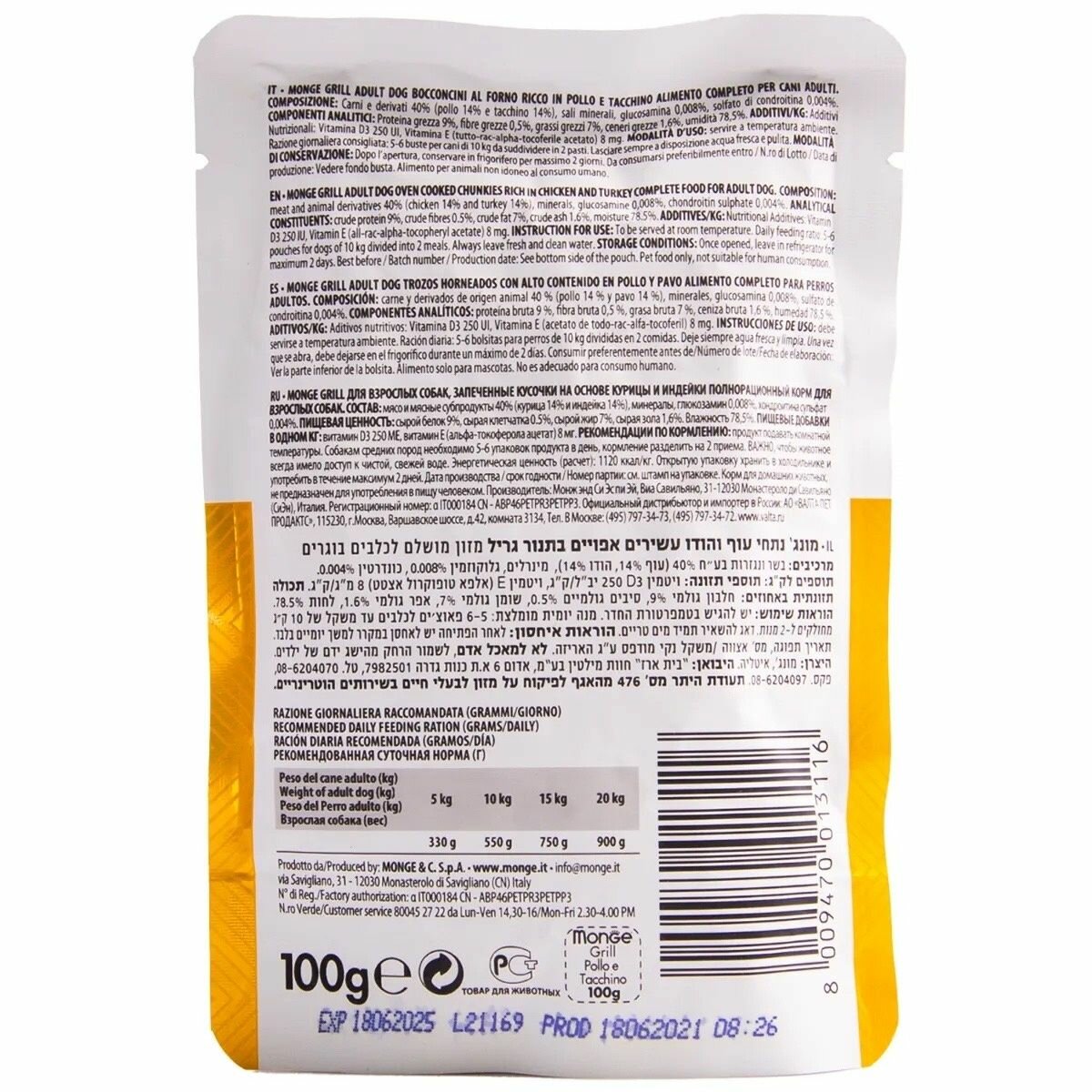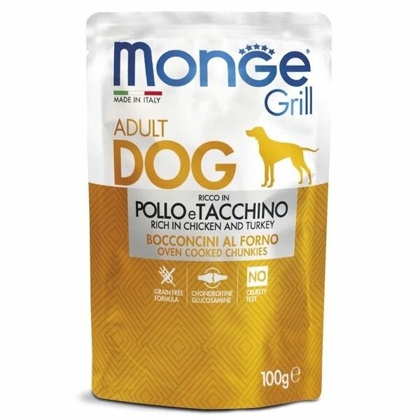 Влажный корм Monge Dog Grill для собак с курицей и индейкой, паучи 100 г интересное: