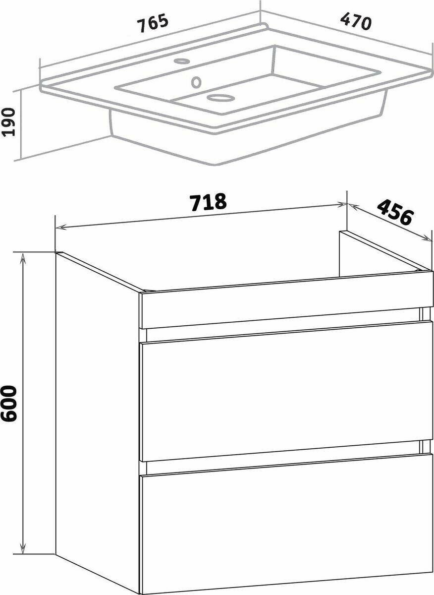 | Комплектация | 1 тумба под раковину, 1 умывальник Оскар 75, 2 ящика, 2 навеса |