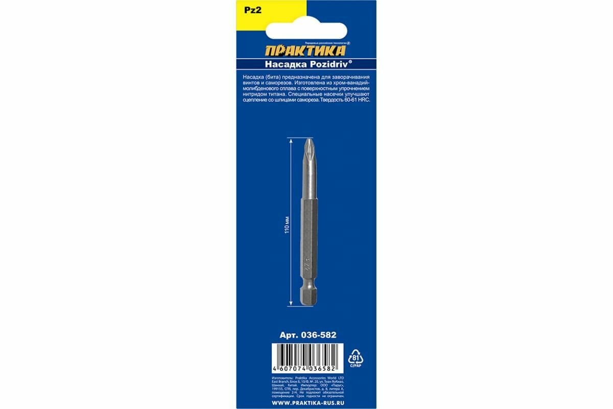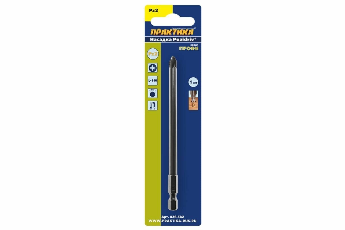 Бита отверточная ПРАКТИКА "Профи" PZ-2 х 110мм (1шт), блистер (036-582)