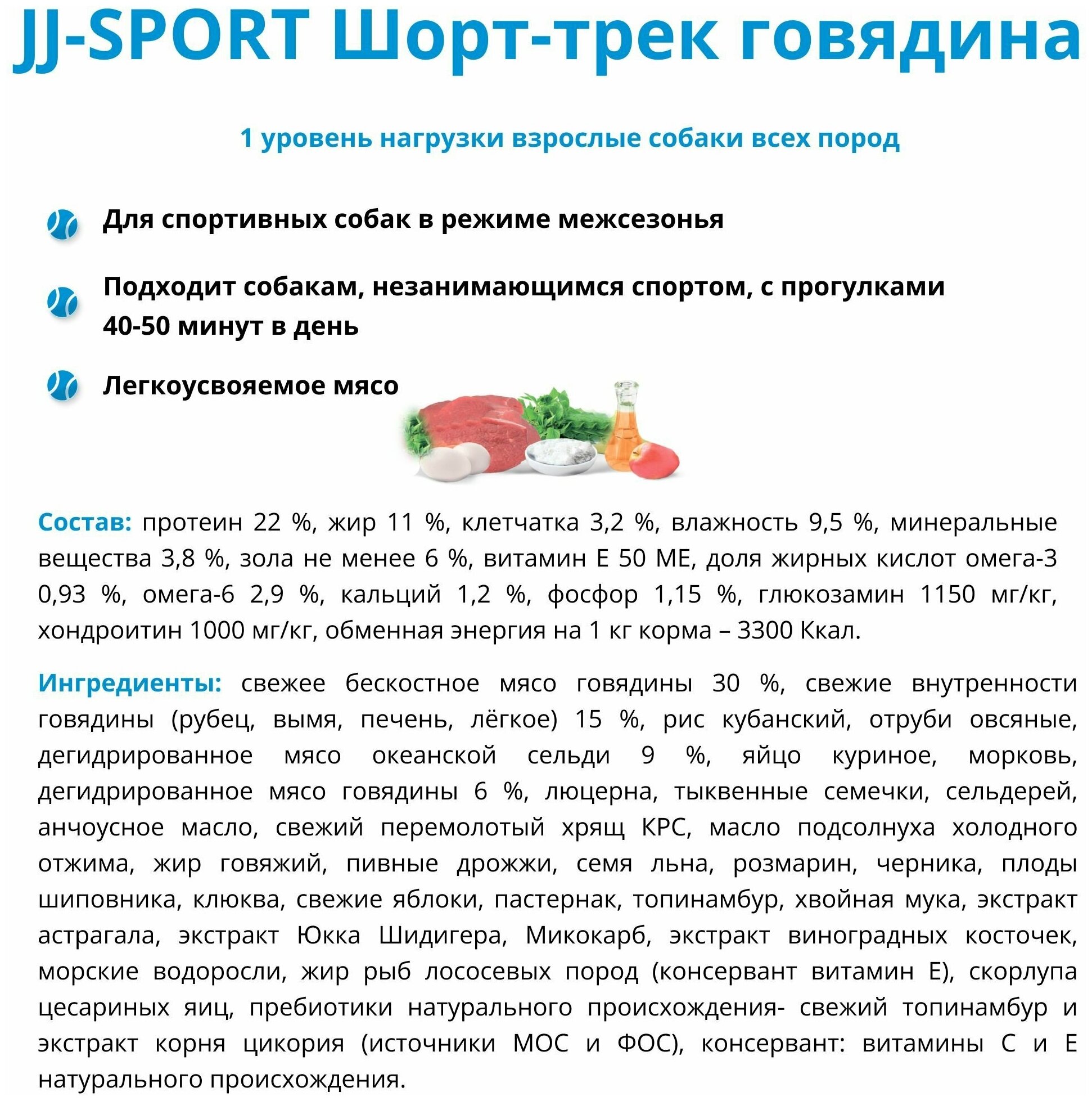 JJSPORT_ЖИВАЯ сила Шорт-Трек Корм для взрослых собак всех пород, 1 уровень нагрузки, с говядиной, Крупная гранула (10 кг) интересное: