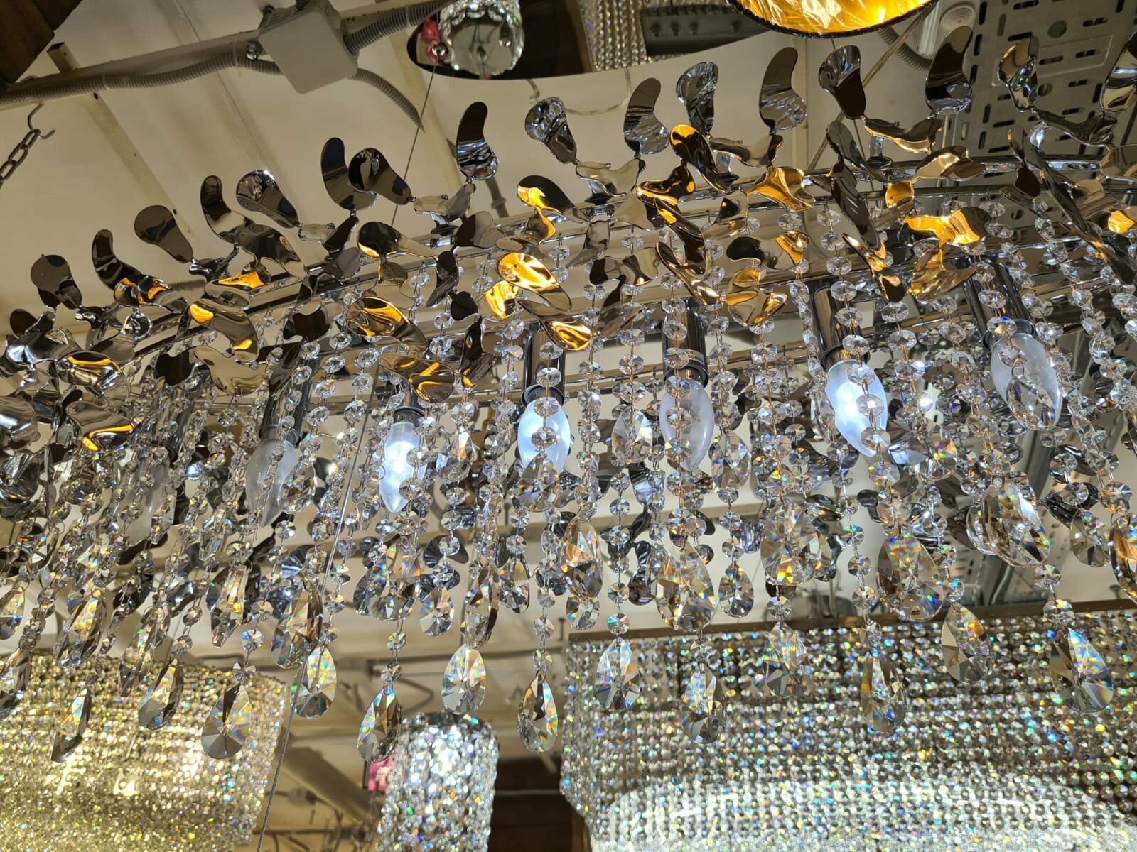 | Материал плафона/абажура | металл, хрусталь |