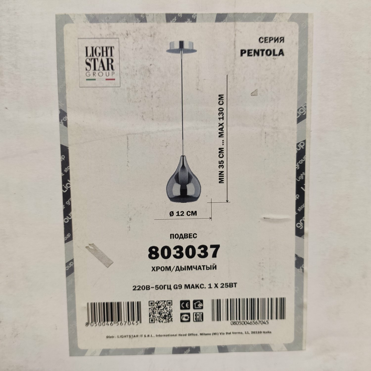 Lightstar 803037 Подвес PENTOLA 1х25W G9 хром/дымчатый