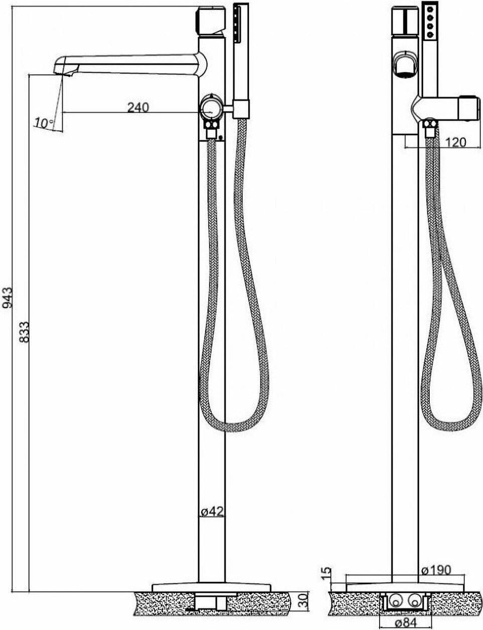 | Тип устройства | смеситель для отдельностоящей ванны |