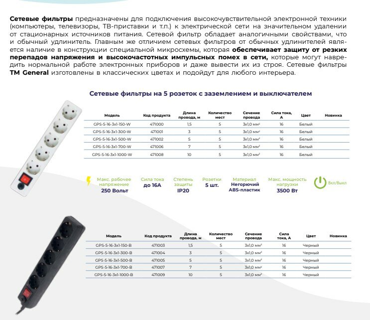 Ниже Вы можете прочитать отзывы на General сет. удл.-фильтр ПВС 3х1 5 роз. 3 м 16А черный земля, выкл. GPS-5-16-3х1-300-B 471004, ознакомится с подробными характеристиками, посмотреть интересные обзоры и фотографии на General сет. удл.-фильтр ПВС 3х1 5 роз. 3 м 16А черный земля, выкл. GPS-5-16-3х1-300-B 471004.