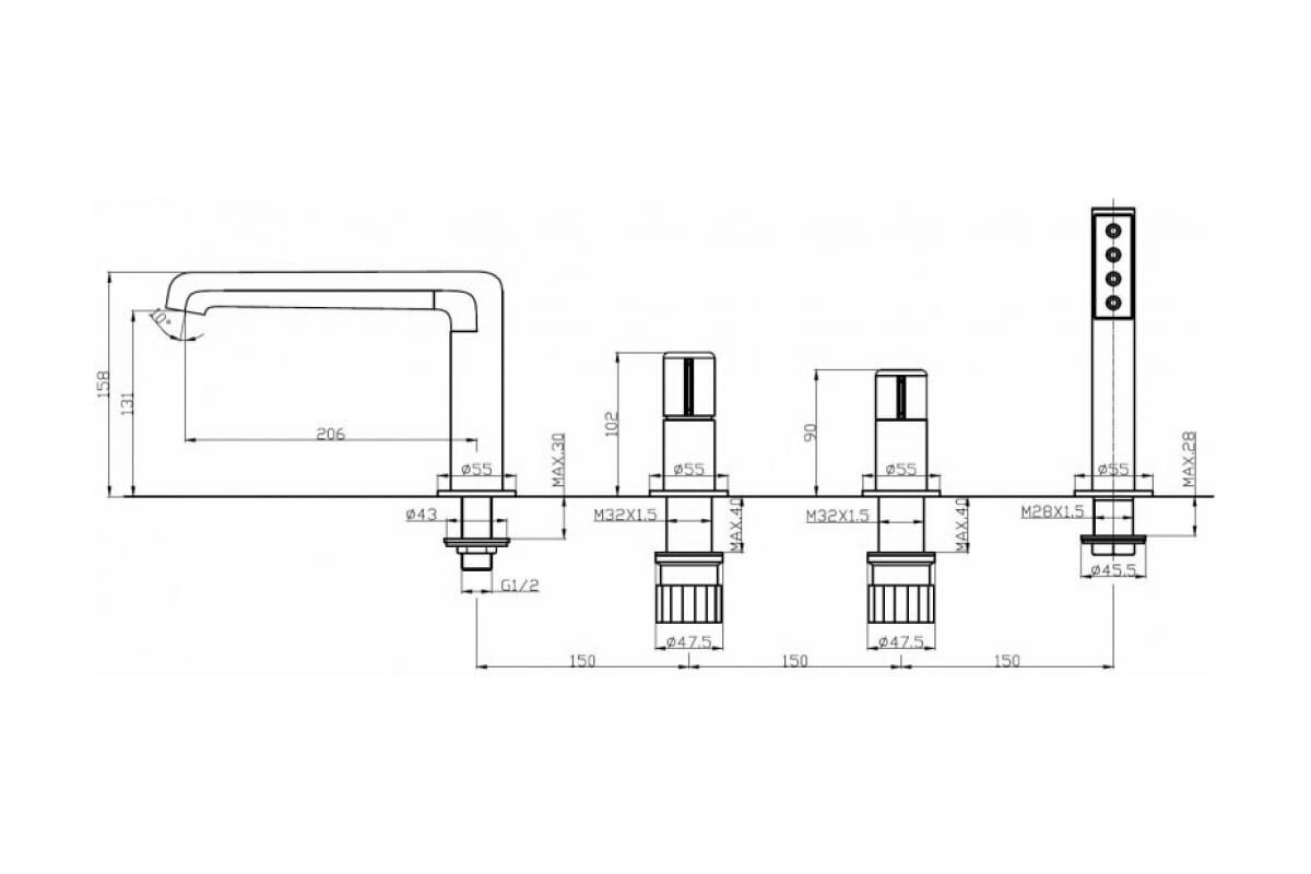 | Длина излива | 206 мм |