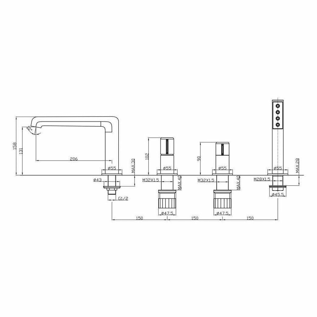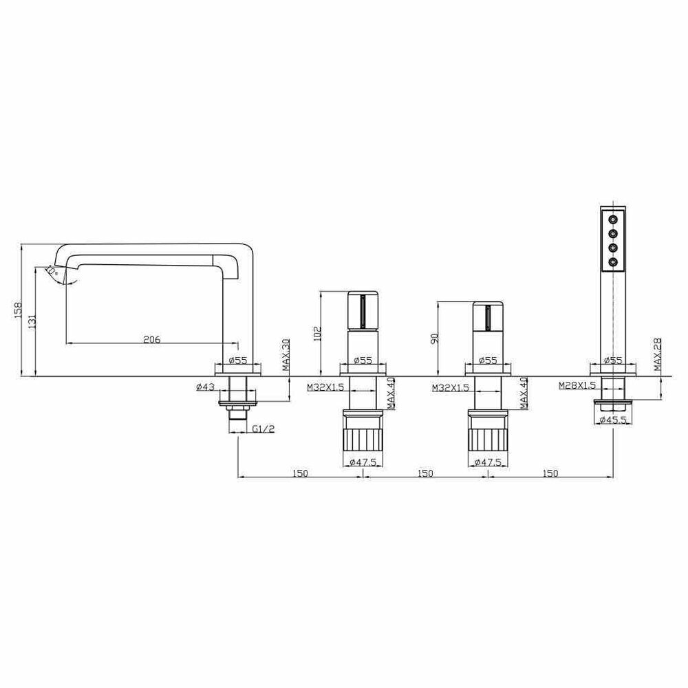 Смеситель BelBagno Uno UNO-BVD4-CRM на борт ванны