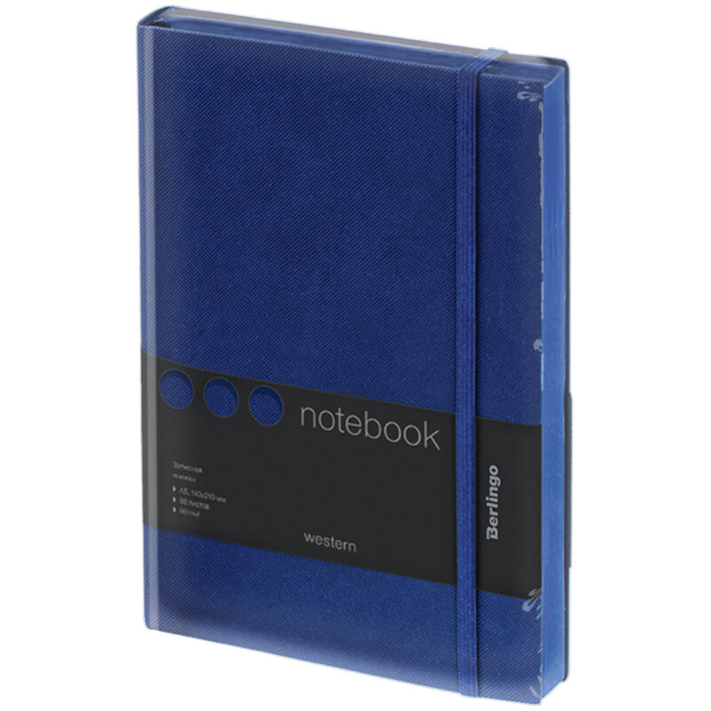 Записная книжка BERLINGO "Western", А5, 80 л, кожзам, черный срез, с резинкой, синий