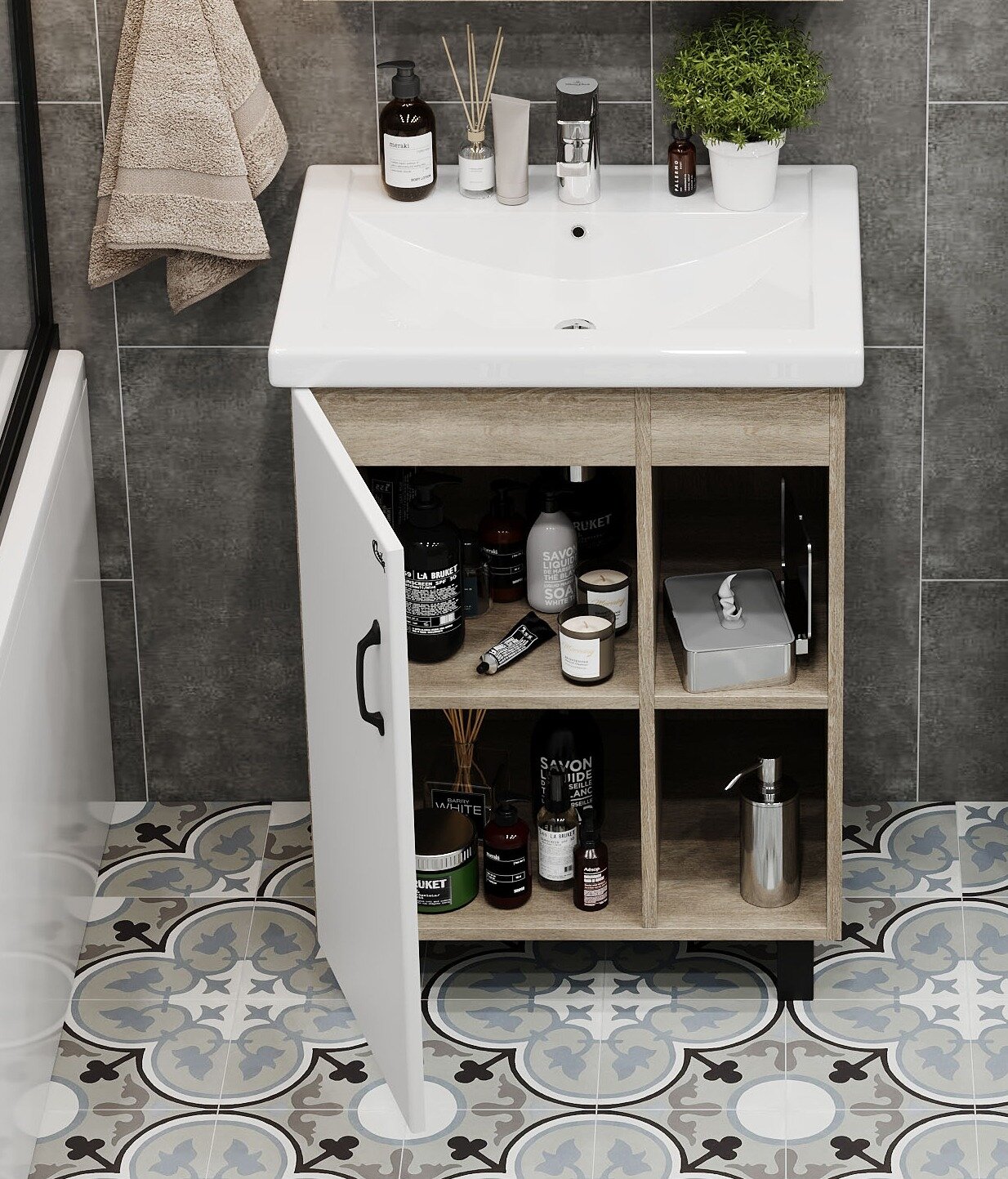 Тумба с раковиной Onika Тимбер 60.01 белая, дуб сонома, с раковиной Cersanit Como 60