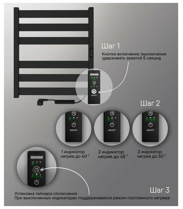 Indigo Электрический полотенцесушитель INDIGO LСLOKS5E60-50BRRt Oktava Slim 5 без полочки, черный