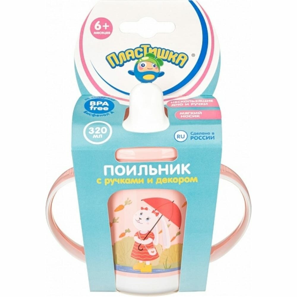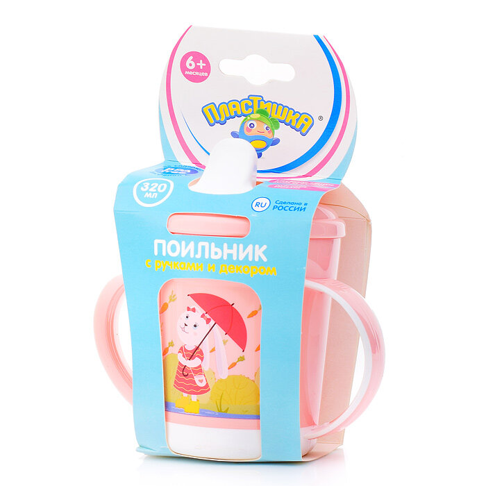 Поильник Пластишка, с ручками и декором, 320мл