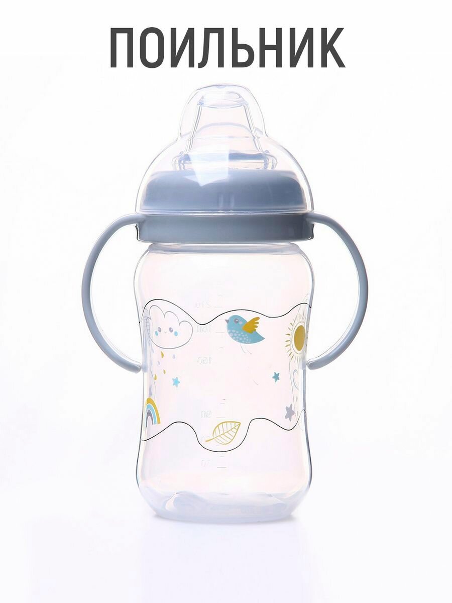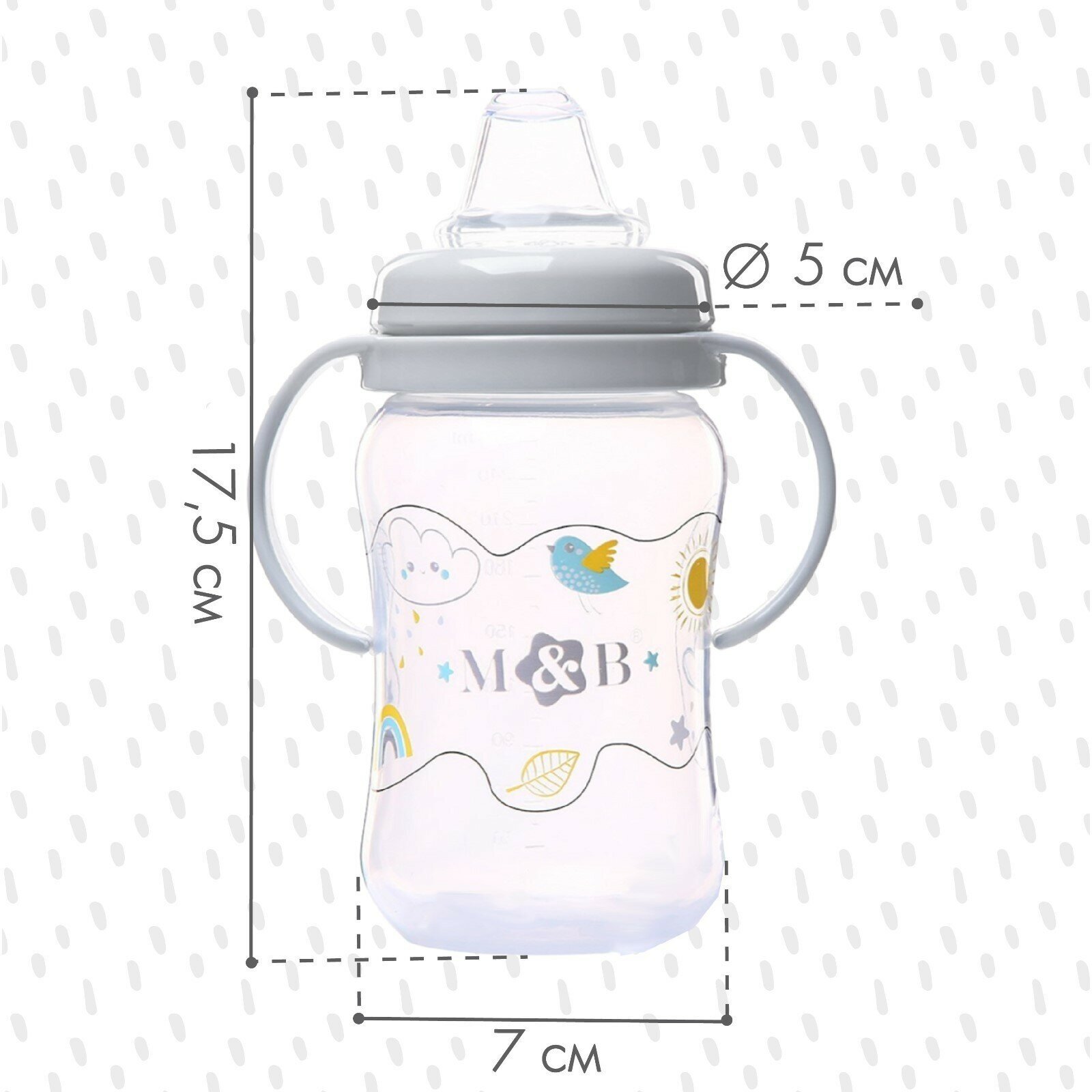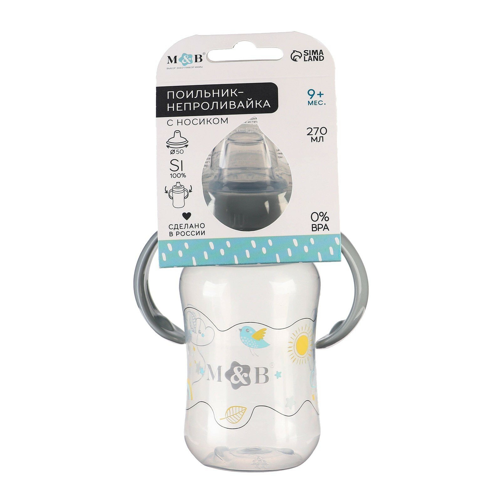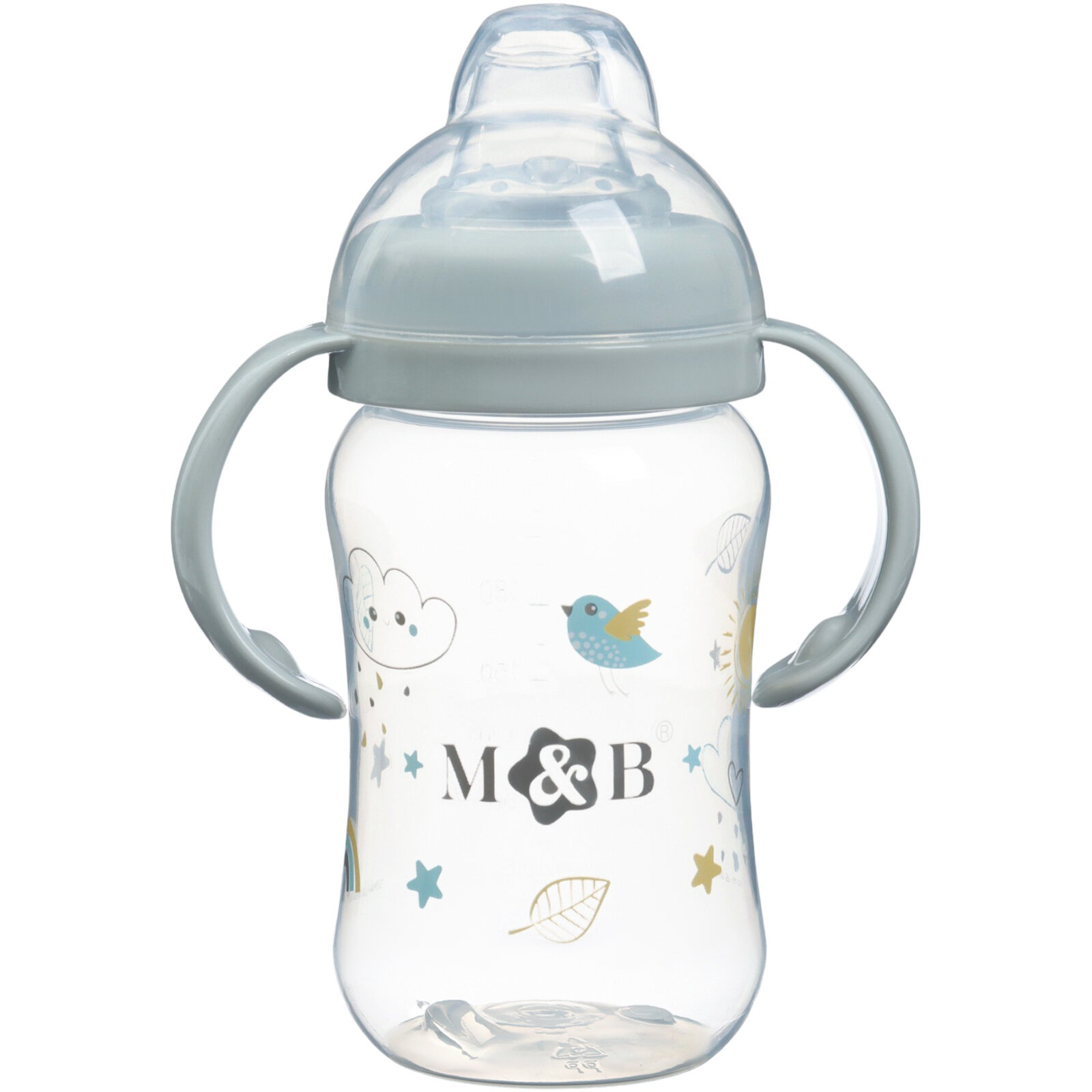 Поильник - непроливайка детский M&B с мягким носиком, от 9 мес, 270 мл, с ручками, серый