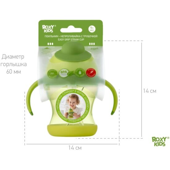 Поильник-непроливайка с трубочкой ROXY-KIDS, 200 мл лайм