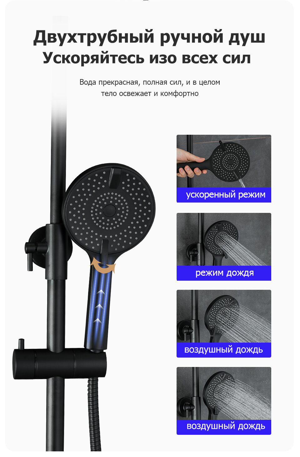 | Режимы | массажная струя / мягкая струя / смешанная струя / тропический дождь |