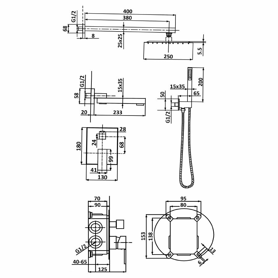 | Форма верхнего душа | квадратная |