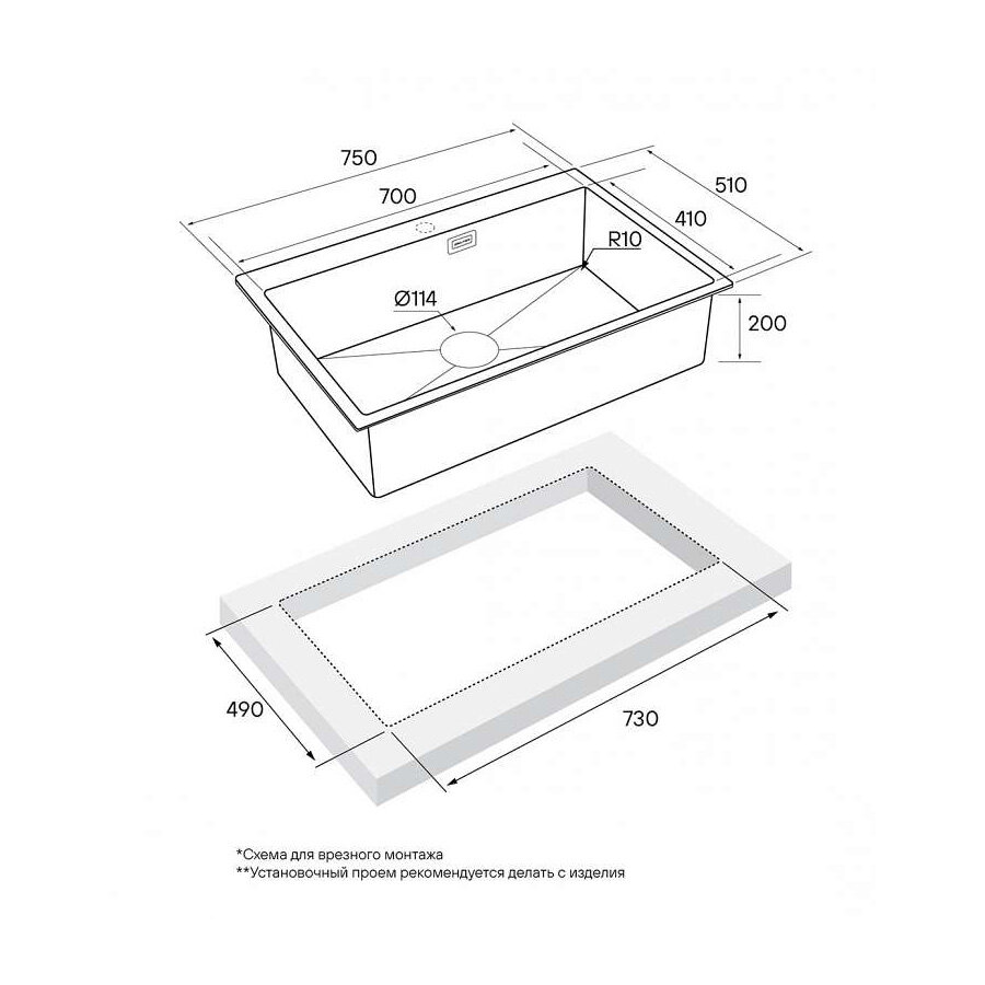 Врезная кухонная мойка LEX Maury 510