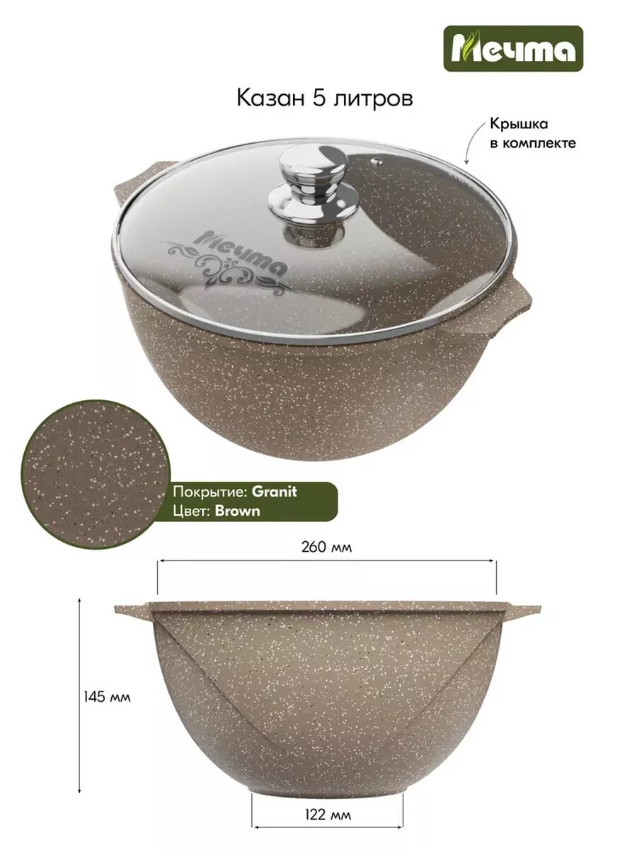 Казан Мечта Гранит Brown 5 л антипригарное покрытие стеклянная крышка