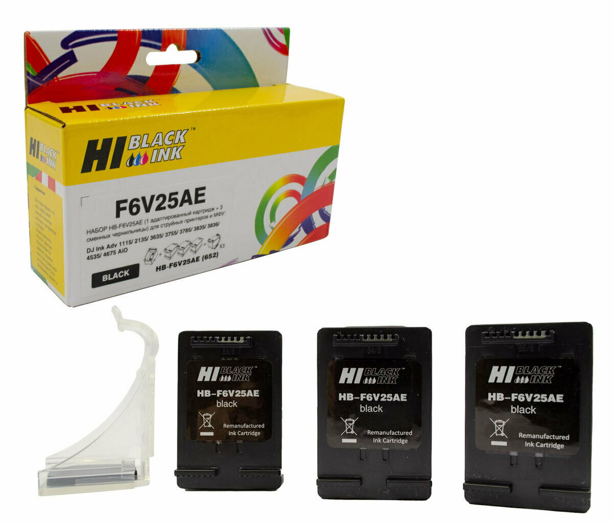Купить Набор Hi-Black (F6V25AE) №652 (1 адапт. картридж+ 3 сменных чернильницы) для HP DJ1115/3636, BK