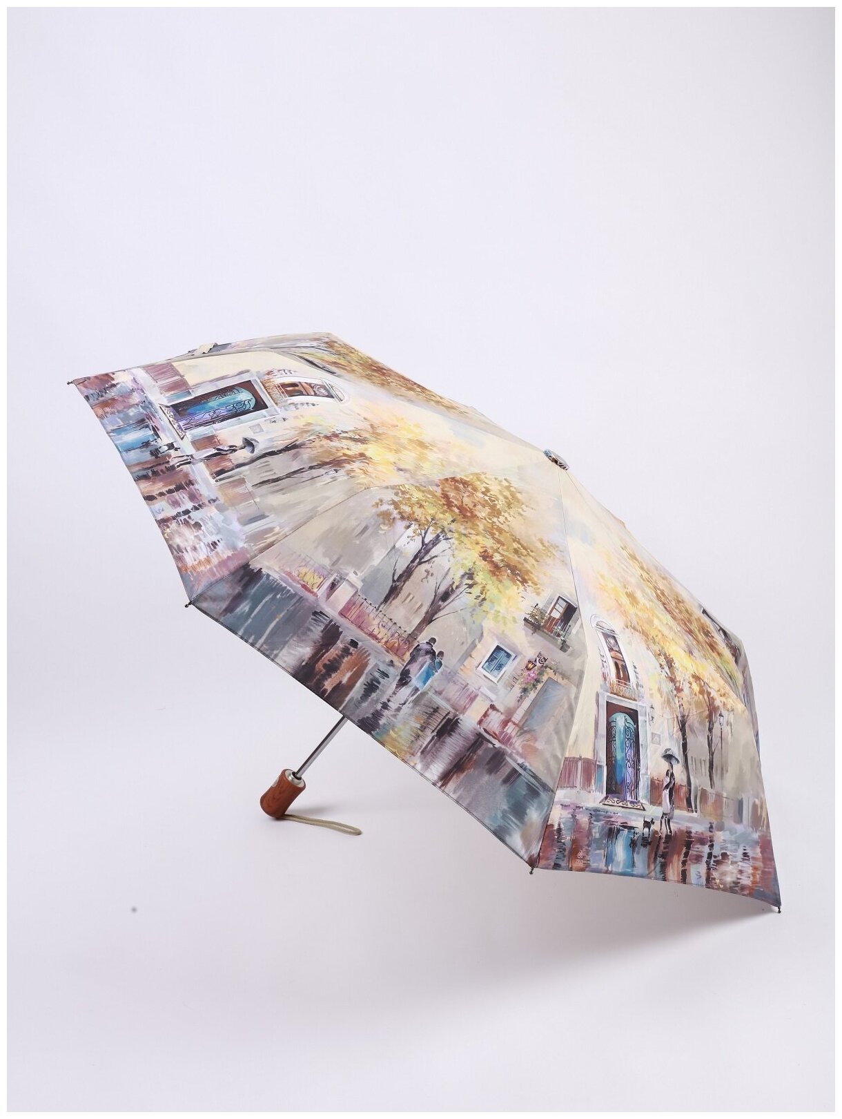 Зонт "Три Слона" женский №310-5, купол D=103 см, 10 спиц, суперавтомат бежево-черный