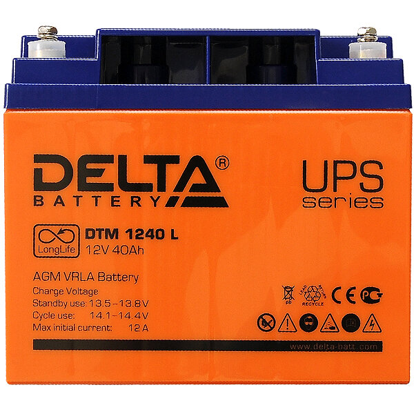 Аккумуляторная батарея DTM1240L 12В 40Ач срок службы 12 лет Delta