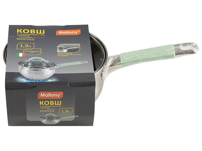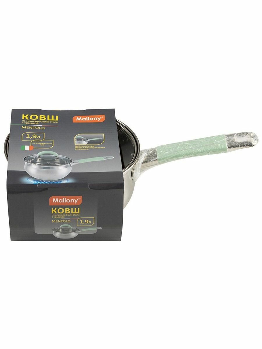 Mallony Ковш Mentolo, 1,9 л, из нержавеющей стали с крышкой, ручки с силиконом 103575 .