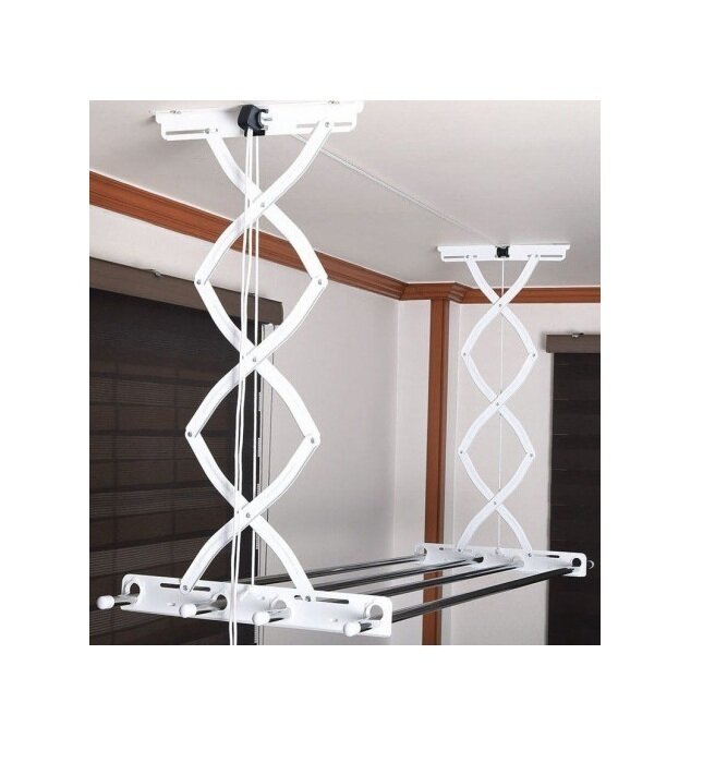 | Дополнительная информация | комплектация: крепление с веревкой и ручкой — 1 шт., раздвижные перекладины — 4 шт., шайба — 4 шт., крепление — 2 шт., дюбель и саморез — по 4 шт., инструкция на русском языке — 1 шт.; опускается от потолка на 70 cм., поднимается к потолку до 25 см.; регулирующая длина перекладин для белья от 103 -190 см |