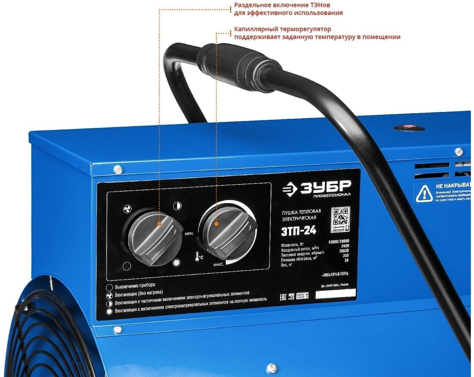 ЗУБР 24 кВт, электрическая тепловая пушка, Профессионал (ЗТП-24)