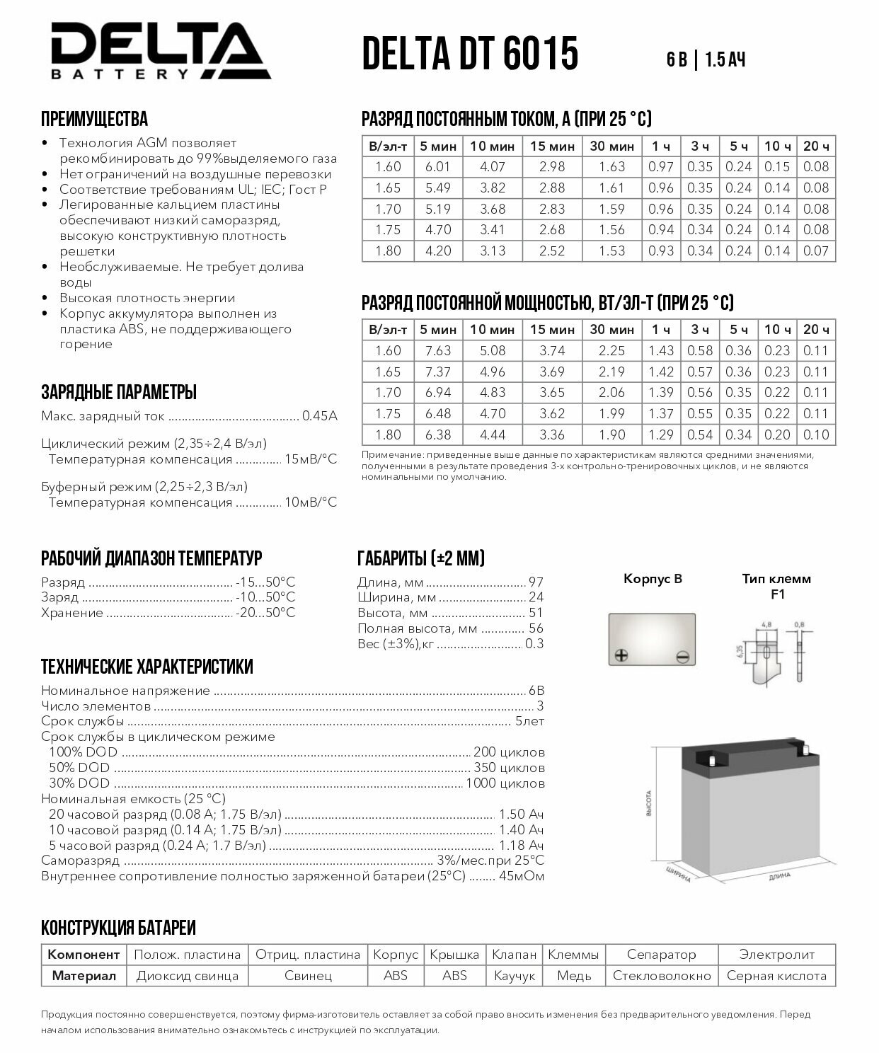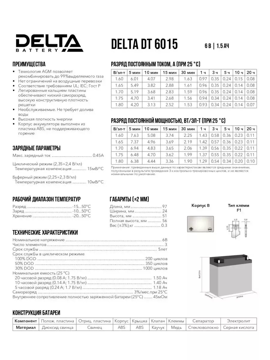 СохранитьАккумулятор 6V - 1,5 А/ч "Delta DT" (DT 6015) интересное: