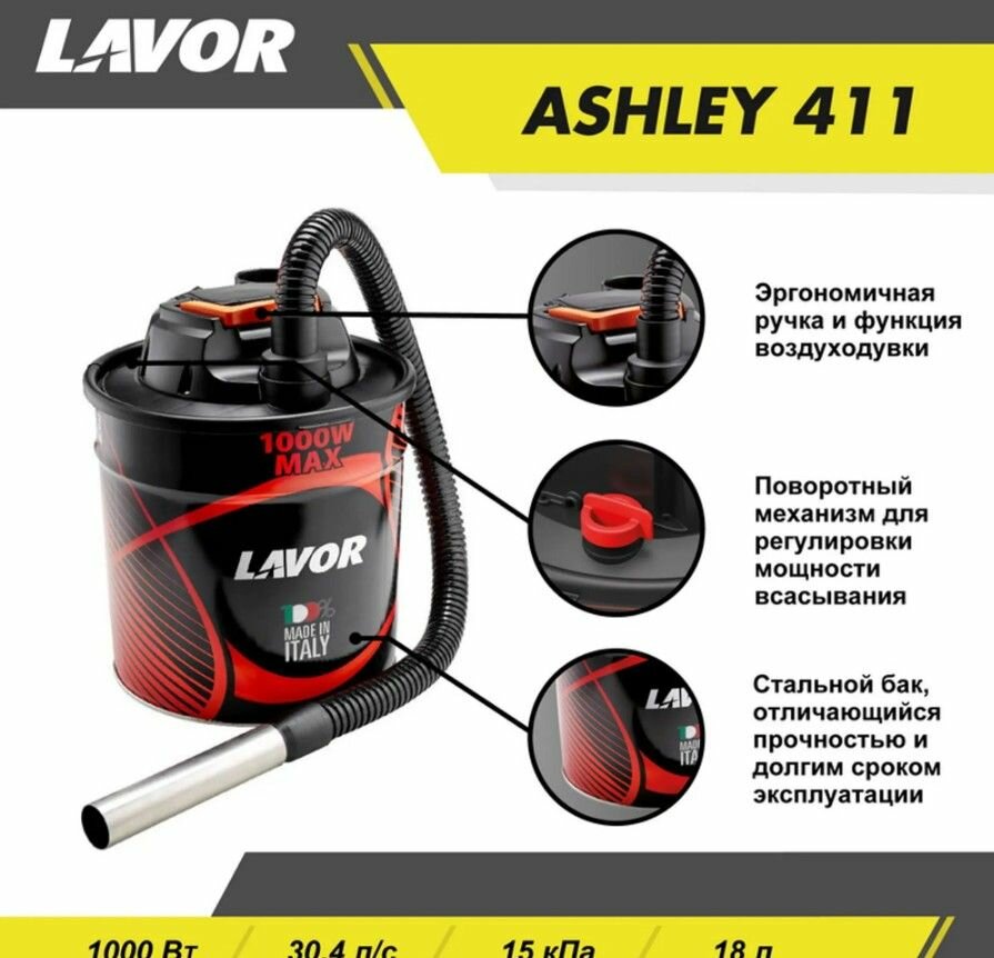 Пылесос для золы Lavor ASHLEY 411/ 1000Вт / пылесос сухой чистки (для каминов, печей, мангалов и барбекю) (8.254.0008) интересное: