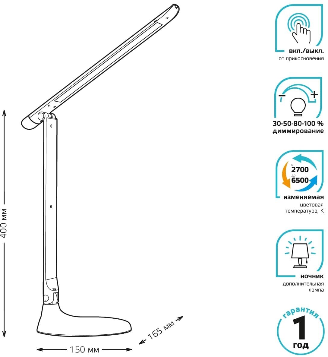 Лампа настольная светодиодная сенсорная 2700-6500К 10 Вт Gauss (GT2041)